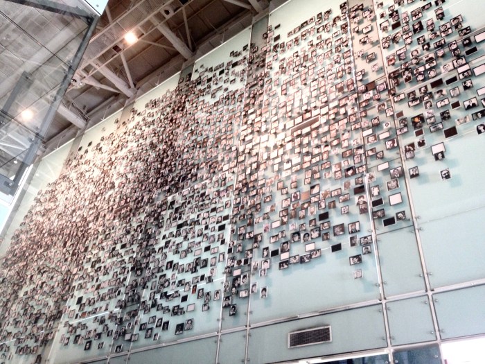 C’est que nous sommes plusieurs à visiter ce musée avec la crainte de rencontrer sur un mur ou sur un écran un visage connu, un quartier d’enfance, le nom d’un.e cousin.e lointain.e ou d’un.e ami.e de la famille, et cette crainte suffit à nous plonger, à partir des objets exposés, au plus profond de nos souvenirs les plus vifs et ceux qu’on ne connaît pas encore. Nous sommes plusieurs, dans ce musée, à penser à nos parents, grands-parents, ami.e.s, à ces histoires qu’on ne nous a pas racontées entièrement, ou qu’on nous a, au contraire, répétées comme des refrains, nous laissant toute notre vie durant assuré.e.s que quelque chose de plus glauque, de plus triste ou de plus intime se cache sous ces phrases qui n’arrivent jamais à satisfaire notre envie de savoir. Alors, avant même d’entrer dans le musée, magnifique endroit dont la vastitude appelle à la méditation, nous sommes plusieurs à être investi.e.s d’une ouverture et d’une réceptivité aussi émotive que politique.